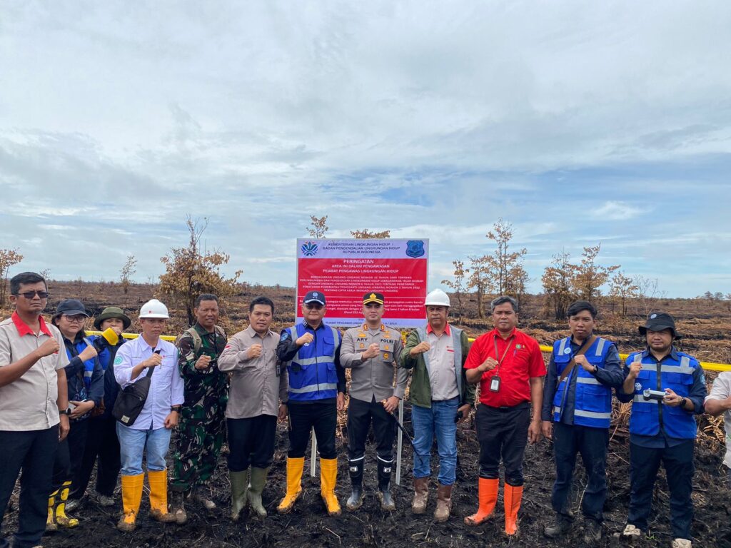 Mediamabespolri.com // Kubu Raya – Satgas Penegakan Hukum (Gakkum) Kementerian Lingkungan Hidup dan Kehutanan (KLHK) Republik Indonesia melakukan peninjauan sekaligus penyegelan terhadap lokasi kebakaran hutan dan lahan (karhutla) di kawasan Afdeling 1 PT. Putra Lirik Domas (PLD), perbatasan Blok A.25 dengan lahan milik warga Dusun Suka Damai, Desa Pematang Tujuh, Kecamatan Rasau Jaya, Kabupaten Kubu Raya, Kalimantan Barat, pada Sabtu (2/8/2025).