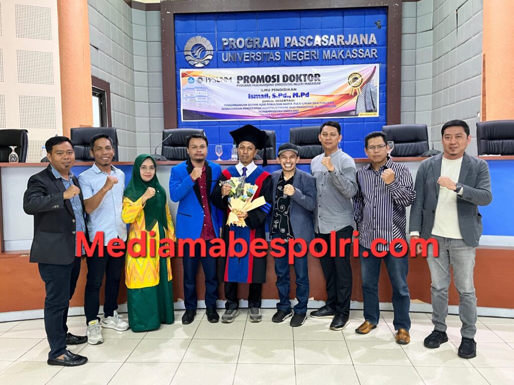 Selamat kepada Dr. Ismail, S.Pd., M.Pd. atas capaian akademiknya. Semoga ilmu yang diraih membawa keberkahan serta memberikan manfaat bagi institusi, masyarakat, bangsa, dan negara. Aamiin. Redaksi mediamabespolri.com-Yudi
