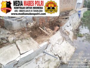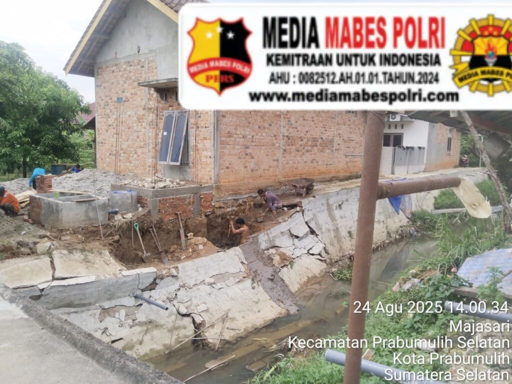 “Bangunan Pondasi Cor beton permanen yang berdiri di atas Sungai Kelekar, Kalurahan Majasasi, Prabumulih Selatan,Kota Prabumulih. Minggu 24 Agustus 2025
