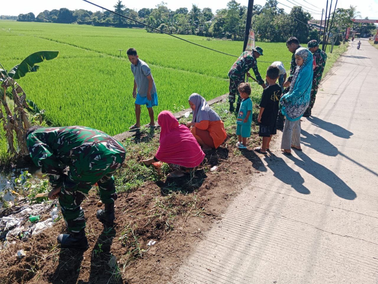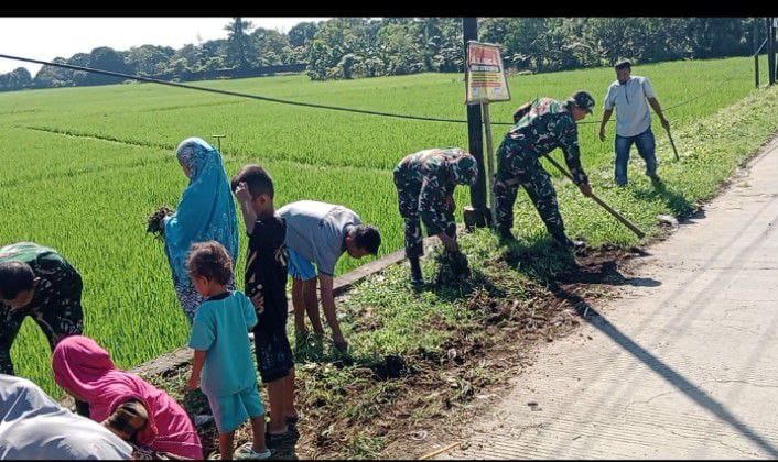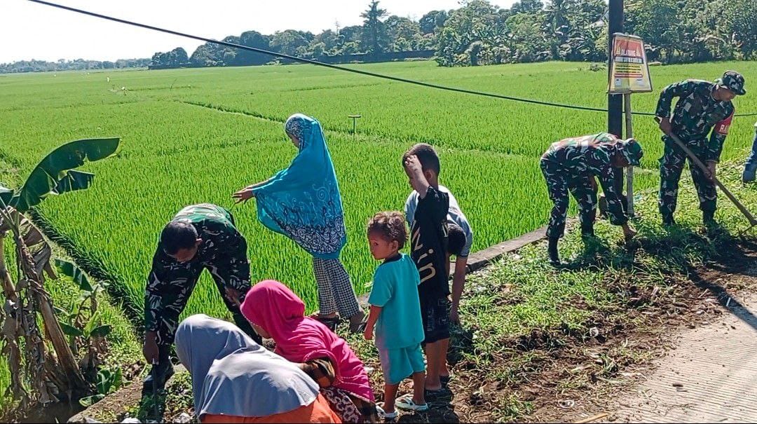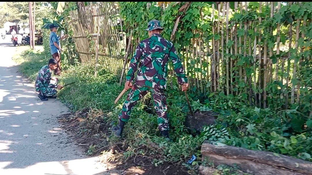 Hal tersebut terbukti saat anggota Koramil dengan sepenuh hati membantu warga masyarakat melaksanakan kerja bakti membersihkan saluran air dan rumput liar di pinggir jalan.