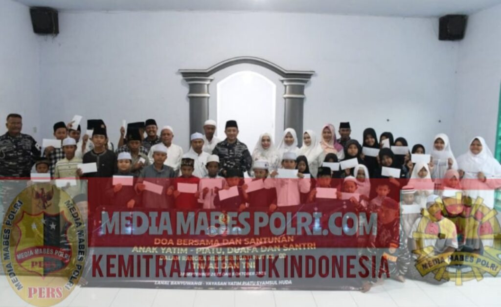 BANYUWANGI mediamabespolri.com – Pangkalan TNI Angkatan Laut (Lanal) Banyuwangi menggelar doa bersama dan penyerahan santunan kepada anak yatim piatu, dhuafa, serta santri. Kegiatan ini digelar dalam rangka memperingati Hari Ulang Tahun TNI Angkatan Laut ke-80, yang jatuh pada 10 September 2025, sekaligus HUT Tentara Nasional Indonesia (TNI) ke-80, yang akan diperingati pada 5 Oktober 2025.